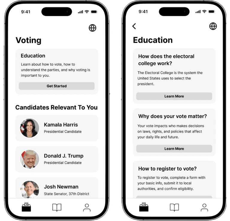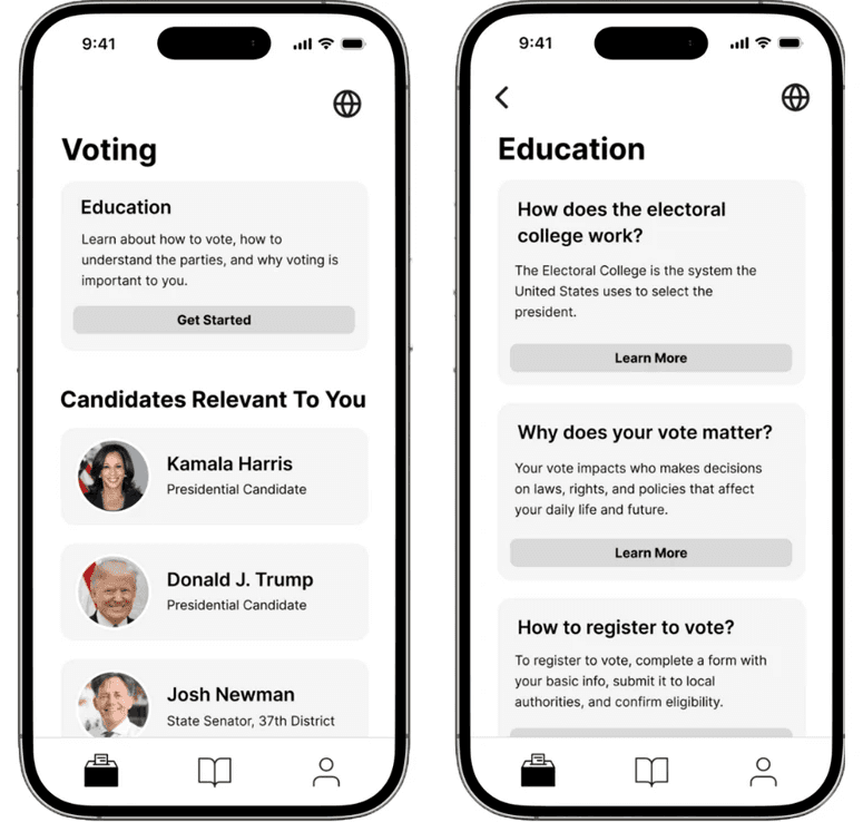 A mobile app that increases voter literacy for first and second-generation American citizens.