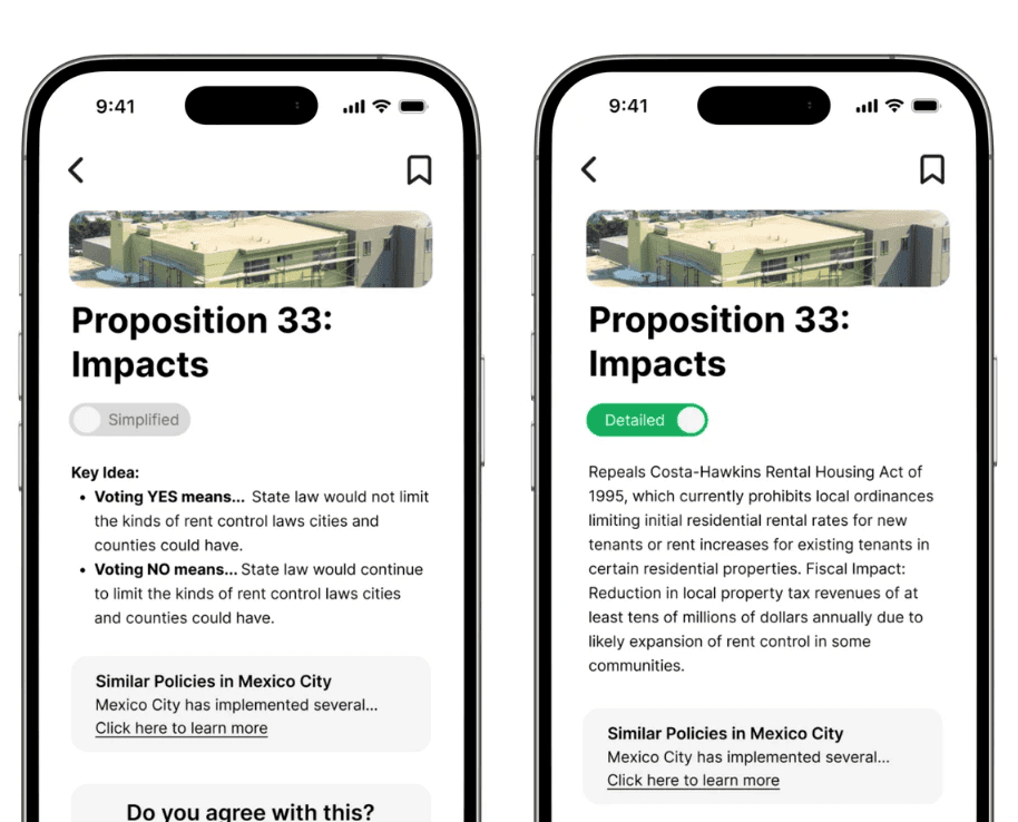 Stay Updated: Read about latest propositions and issues in user’s area that will personally affect them, cross-checked by AI for neutrality.