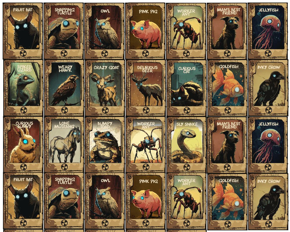 The game is turn based and utilizes tiered cards (1-3) and game mats. With 78 cards, designing them consisted of combining tools such as Adobe Illustrator, Photoshop, Figma, and Midjourney.